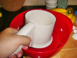 • 1. ร่อนแป้ง ผงฟู และเบคกิ้งโซดาเข้าด้วยกัน
