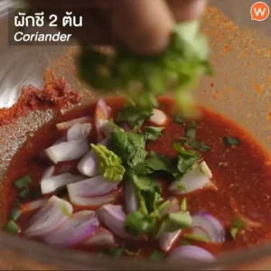 – ซอยหอมแดง ต้นหอม และผักชี เตรียมไว้
