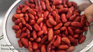 1.ล้างถั่วแดงหลวงให้สะอาด แล้วแช่น้ำทิ้งไว้อย่างน้อย 8 ชั่วโมง หรือค้างคืน