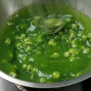2.นำไปเคี่ยวด้วยไ ฟ อ่อน-กลาง คนอย่างต่อเนื่อง จนกะทิข้น และเงาขึ้น