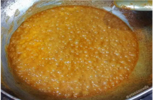 1.กระทะตั้งไฟ ใส่กะทิลงไปพอเดือดใส่พริกแกงคั่วลงไปผัดให้หอม พอกะทิเริ่มแตกมันสีสวย ลดไฟลง