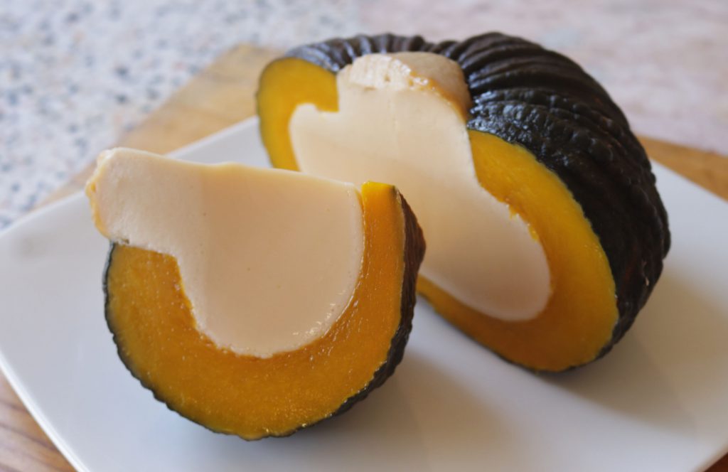 เพื่อไม่ให้ความร้อนระอุมากไปจนทำให้ฟักทองแตกพอสุกแล้ว พักไว้จนเย็นสนิทก่อนนำมาตัดเสร์ฟ