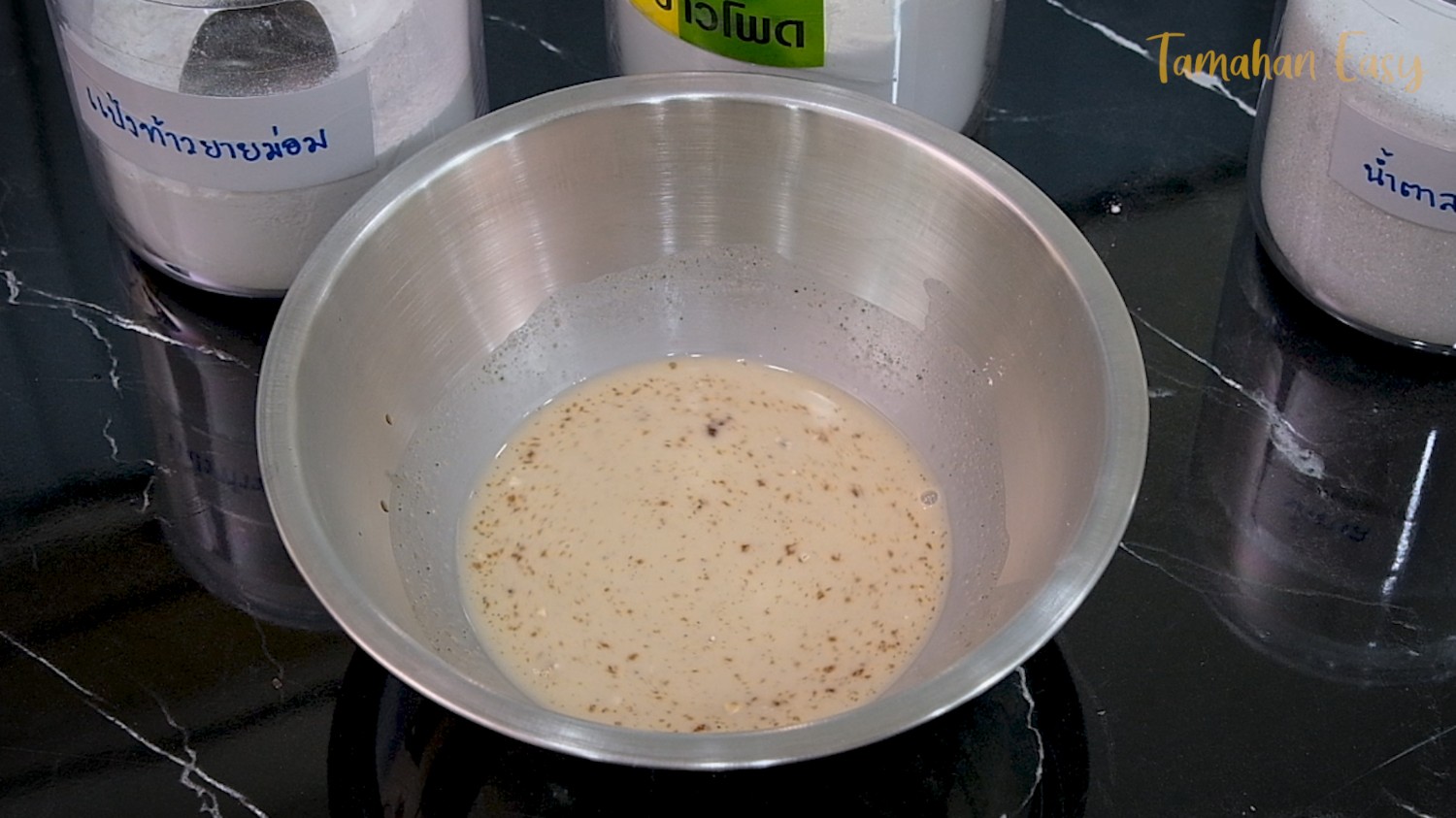 8. คนให้ทุกอย่างเข้ากันและแป้งท้าวยายม่อมละลายจนไม่เหลือเป็นเม็ดๆ