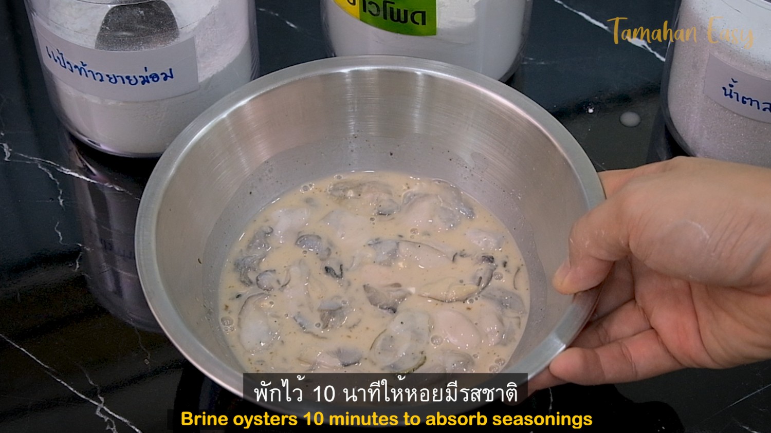 10. เมื่อทุกอย่างเข้ากันดี ให้พักส่วนผสมไว้ 10-15 นาที เพื่อให้หอยนางรมดูดรสชาติเข้าไป หอยจะมีรสอร่อยและฉ่ำน้ำซอส
