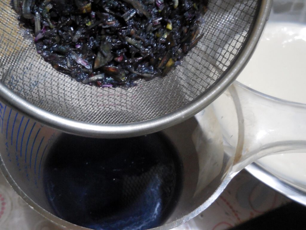 – ใส่น้ำคั้นดอกดินลงไป คนให้เข้ากัน นำไปกรองด้วยกระชอนถี่ๆ พักไว้ 20 นาท