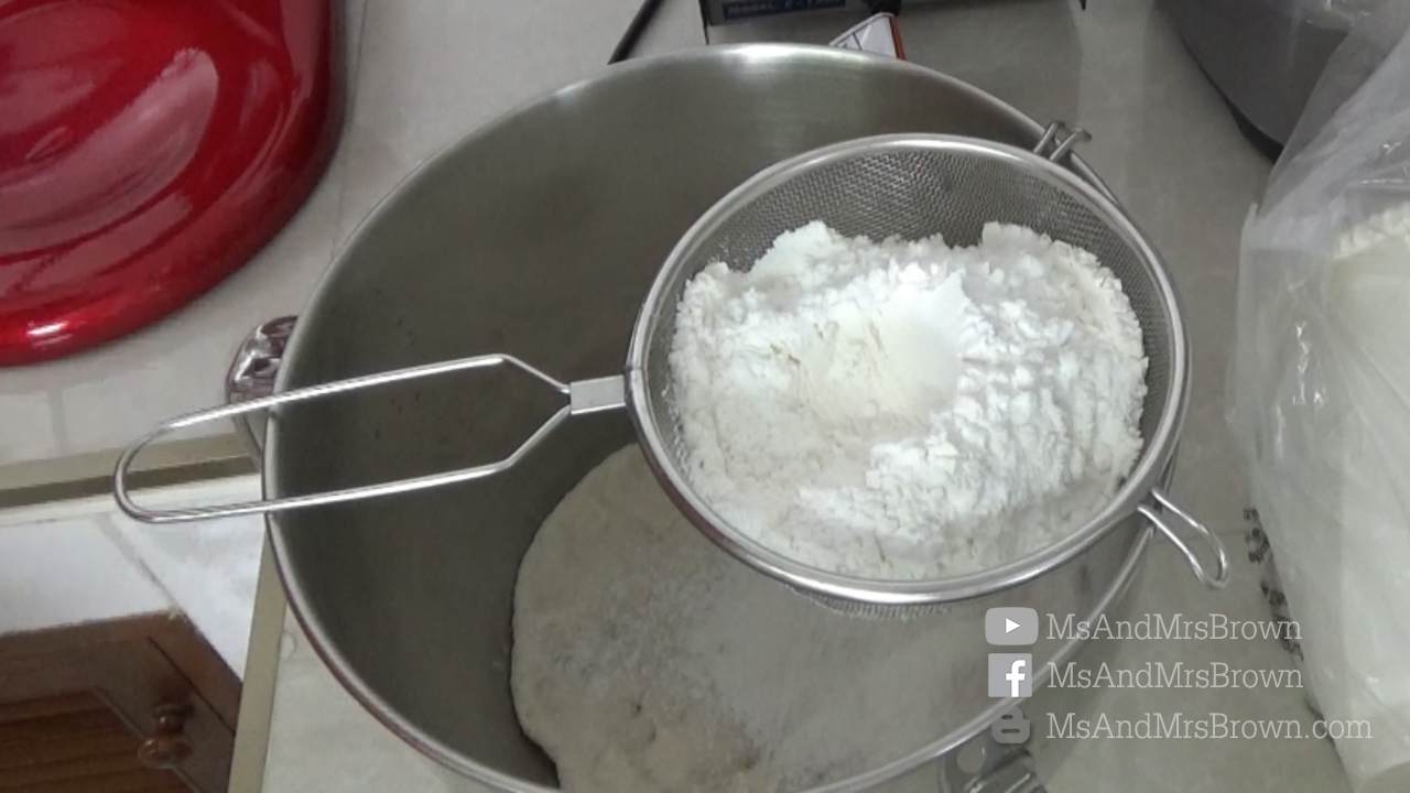5.เมื่อหมักแป้งสปองจ์เสร็จแล้วมาทำแป้งโดว์กันต่อ
