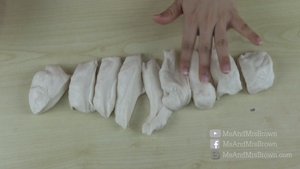 7. เมื่อพักแป้งเสร็จแล้ว ให้ตัดแบ่งแป้งก้อนละ 40 กรัม จะได้ทั้งหมด 18 ก้อน