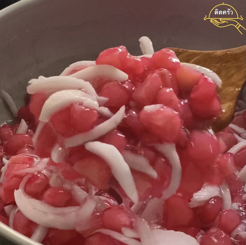 วิธีทำ “ตะโก้ทับทิมกรอบ” ขนมหวานหน้าตาสวย หอมหวานมันกะทิ เก็บไว้ต่อยอดทำกินทำขายได้เลย