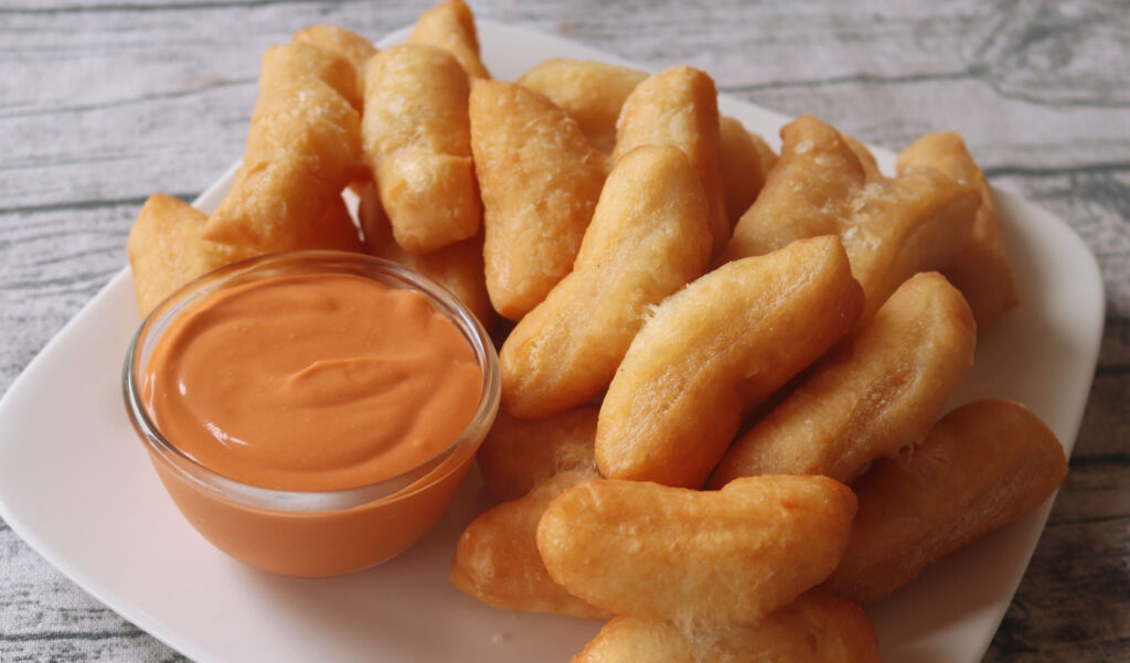 เสิร์ฟคู่กับสังขยาชาไทย ปาท่องโก๋จิ้มสังขยาชาไทย ไม่ใส่แอมโมเนีย อร่อยฟินมากจริงๆค่ะ