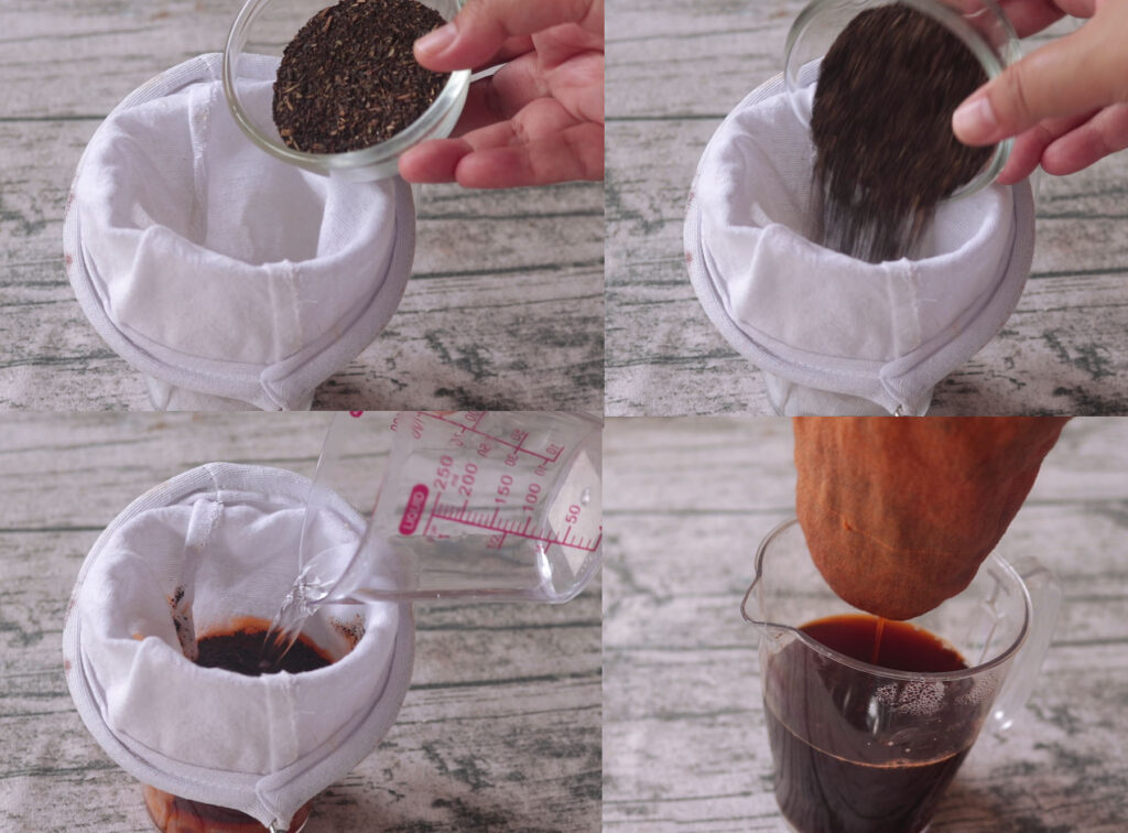 1. ทำไส้สังขยาชาไทยกันค่ะ ผสมน้ำร้อนกับชาไทยแล้วพักไว้ 10 นาที