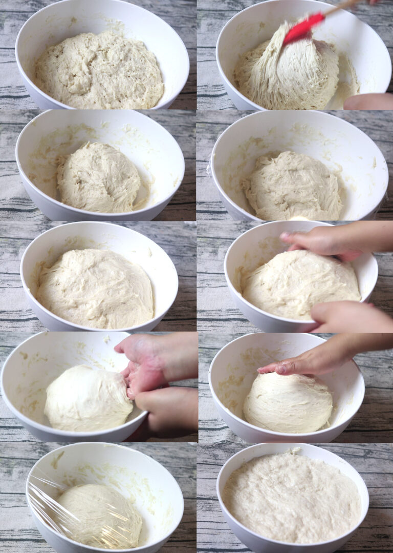 3. พอพักแป้งรอบแรกแล้ว ก็นำแป้งมากลับ กลับแป้งด้านล่างขึ้นมาข้างบน เพื่อให้แป้งขึ้นรูปทั่วถึง จากนั้นก็พักแป้งต่ออีก 1 ช.ม.