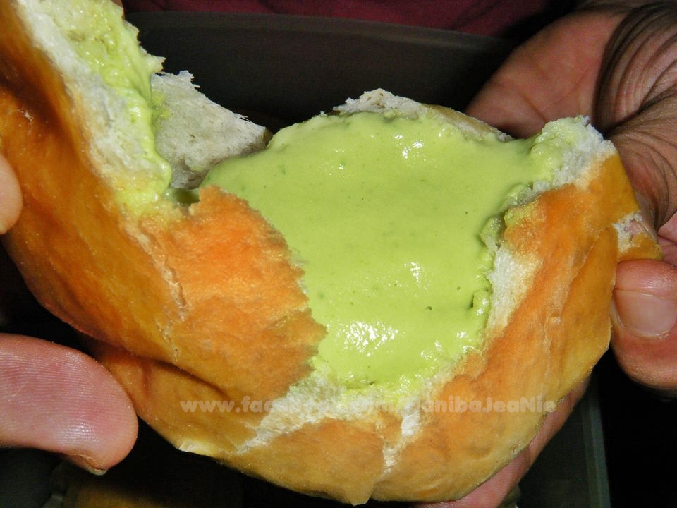 อันนี้แถมค่ะ ตอนที่ฉีดใส่ขนมปังที่ทำไว้เสร็จนะคะ เมื่อฉีกขนมปังดูใส้ที่เราฉีดเข้าไป ฉ่ำเลยค่ะ อิอิ