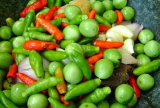 – แล้วก็ให้ใส่พริก มะเขือ ในปริมาณที่ชอบ