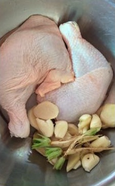 1. ขิงแก่ปอกเปลือกหั่นเป็นแว่น ทุบกระเทียมรากผักชีบุบพอแตก