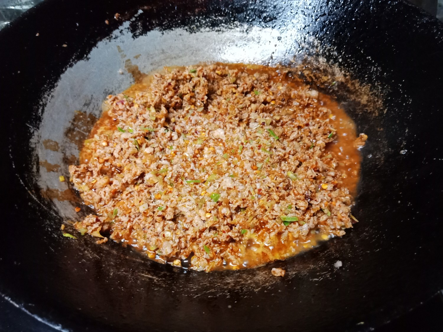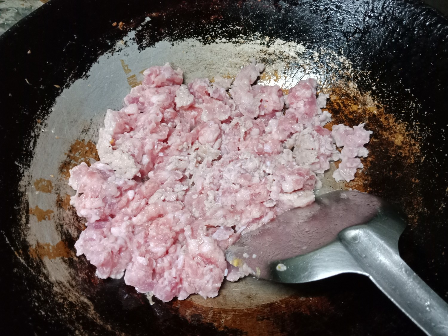 3. ระหว่างรวนหมูสับ ใส่น้ำปลา 1 ช้อนโต๊ะ