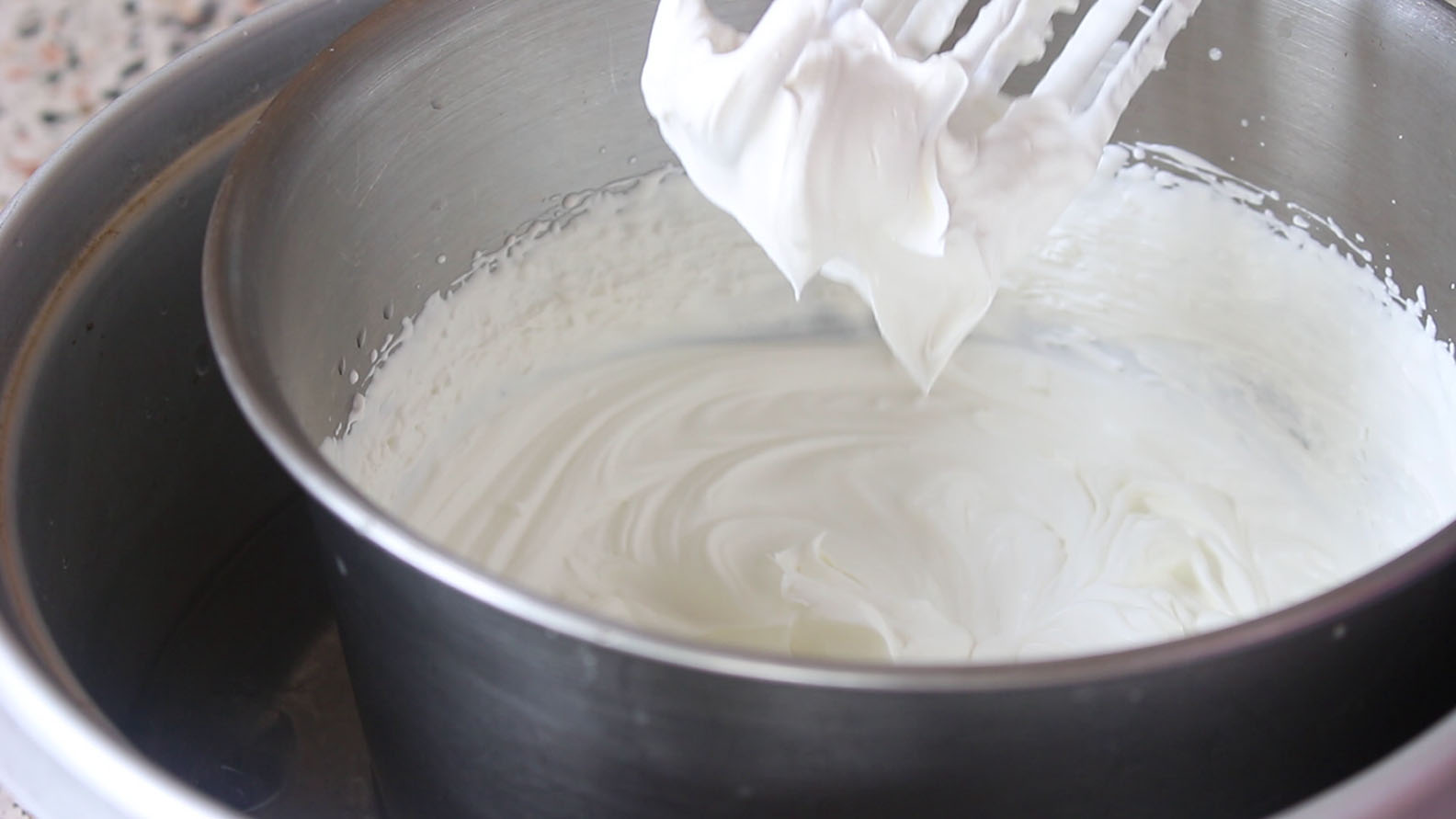 8.พอเค้กเย็นแล้ว ตีวิปปิ้งครีมกับไอซิ่งจนตั้งยอดแข็ง