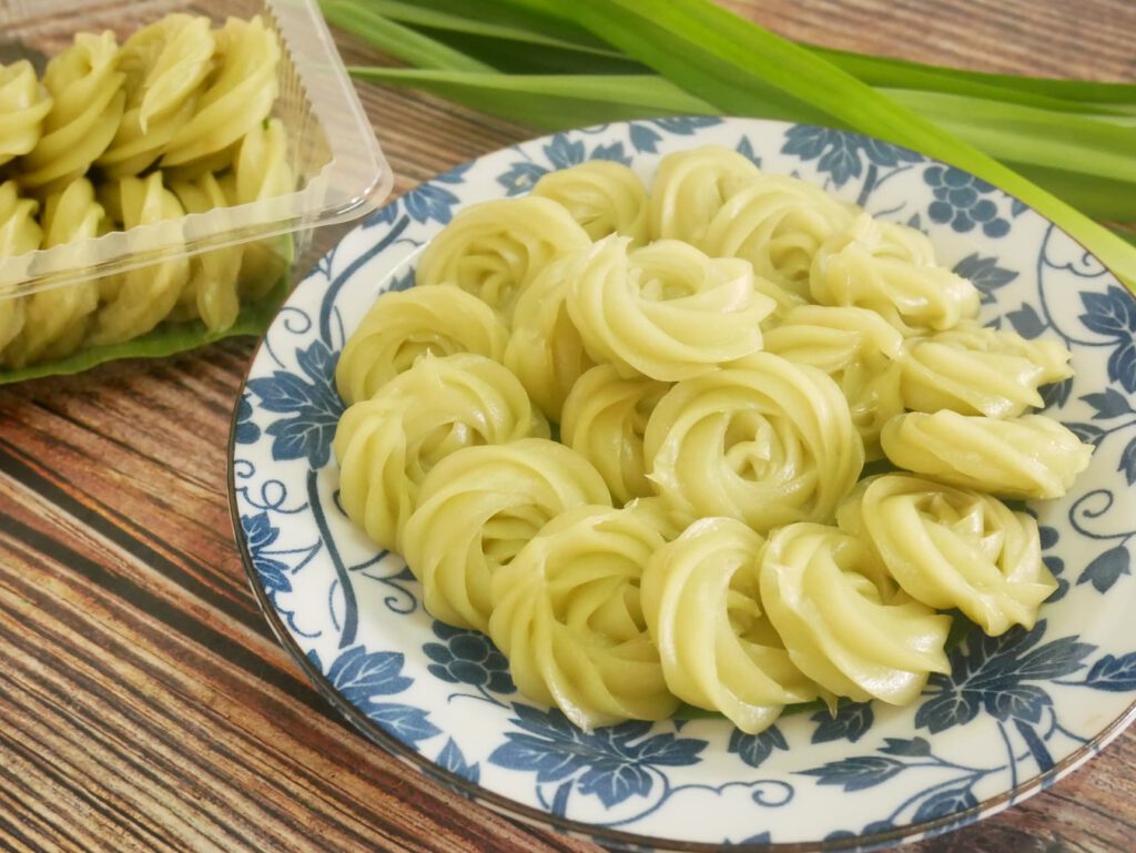 6. หลังจากบีบดอกแล้ว ให้พักลมไว้ให้เซ็ตตัวประมาณ 10 นาที หลังจากนั้น จัดใส่จานหรือกล่องได้เลยค่ะ