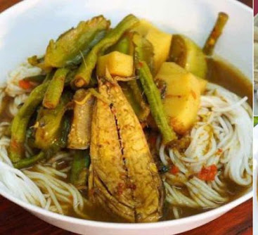 หอมแดง , หน่อไม้ต้มสุก , ถั่วฝักยาว ,ตะไคร้หั่นฝอยไว้ทำพริกแกง และอิกส่วนหั่นเป็นท่อนไว้ใส่ในน้ำซุป , ข่าหั่นฝอยเช่นกันกับตะไคร้คือ