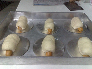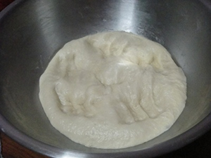 – เอาแป้งออกจากเครื่อง ก็ไล่ลมสักนิดนึง คลึงกลม แร็ปกันอากาศ และพักแป้งรอบแรกประมาณ 45 นาทีค่ะ