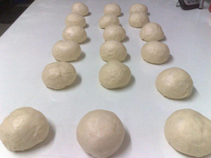 – ครบ 45 นาที ชกแป้ง ไล่ลม ชั่งน้ำหนักค่ะ ก้อนละ 45 กรัม