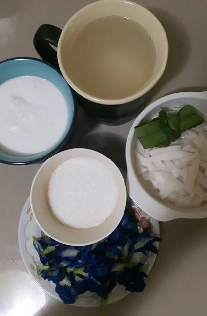 *วิธีทำบัวลอยแก้วมะพร้าวอ่อน จากดอกอัญชัน