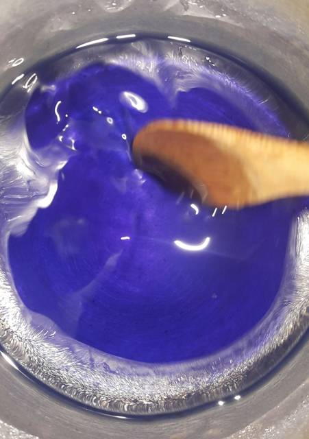 1.นำดอกอัญชันล้างให้สะอาดนำมาตำให้ละเอียดแล้วนำไปกรองบีบมะนาวใส่นิดหน่อยสีจะม่วงขึ้นค่ะ จากนั้นนำไปต้มให้เดือดจัด