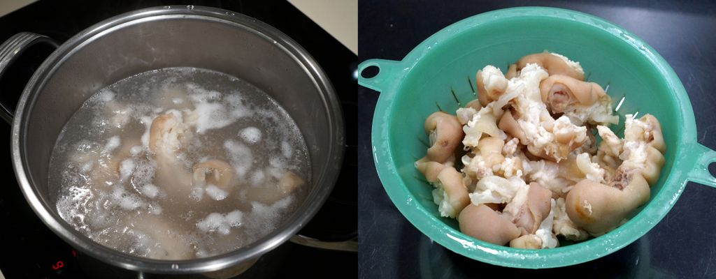 2. นำมาต้มในน้ำเดือดประมาณ 5 นาที เพื่อล้างกลิ่นออก ล้างทำความสะอาดอีกครั้ง
