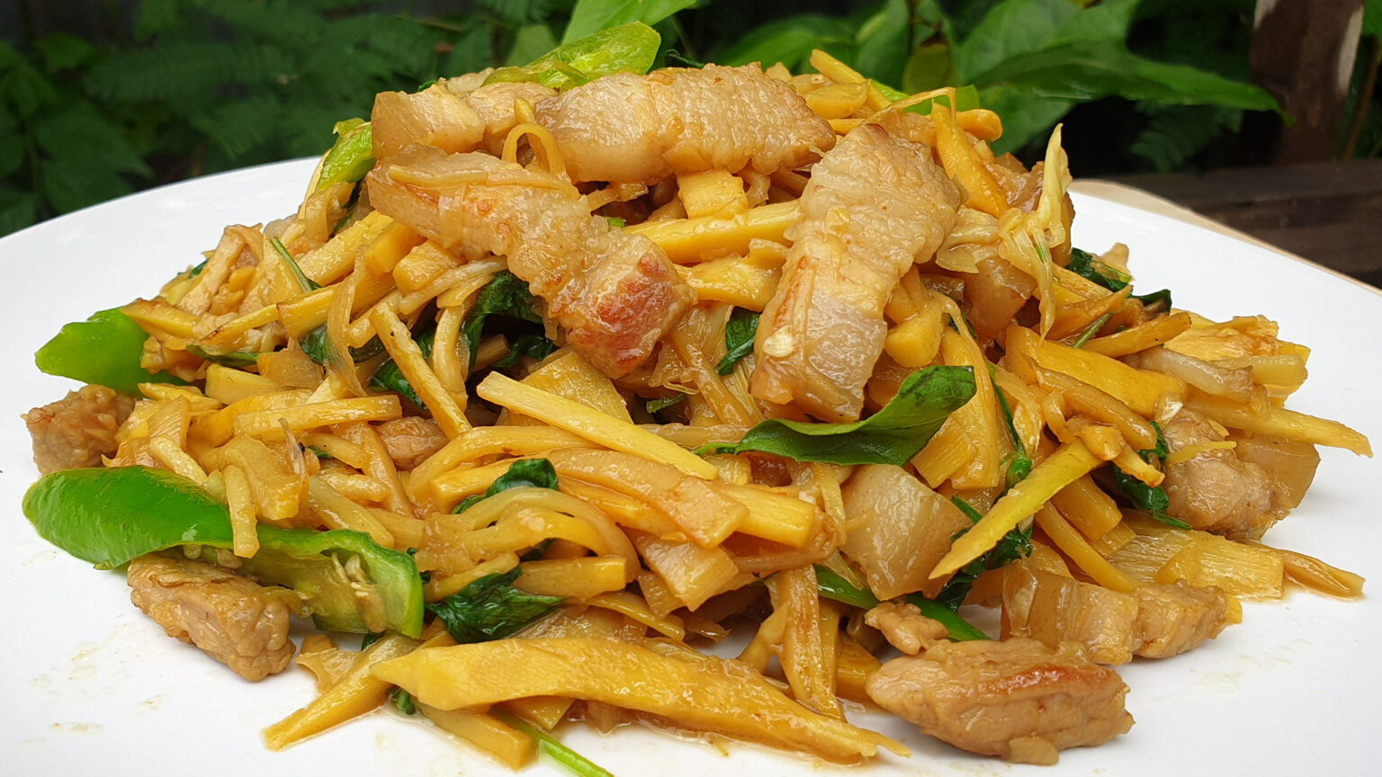 วิธีทำ ผัดหน่อไม้ หมูสามชั้น ใส่ใบแมงลัก(สูตรคุณพ่อ) ทำง่าย มือใหม่ก็ทำได้