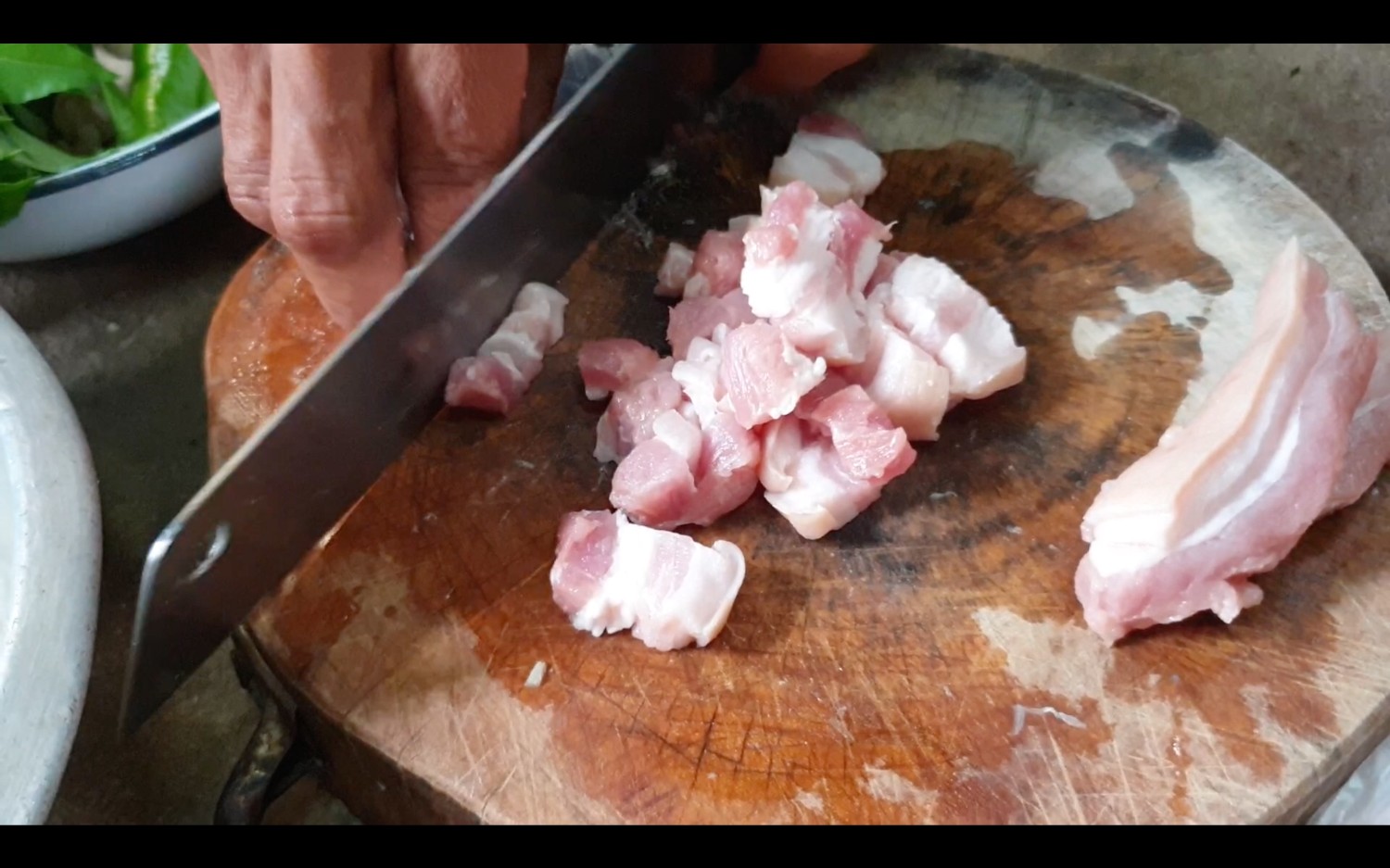 2.หั่นหมูสามชั้นเป็นชิ้นพอดีคำ ชอบมากใส่มากได้เลยนะคะ