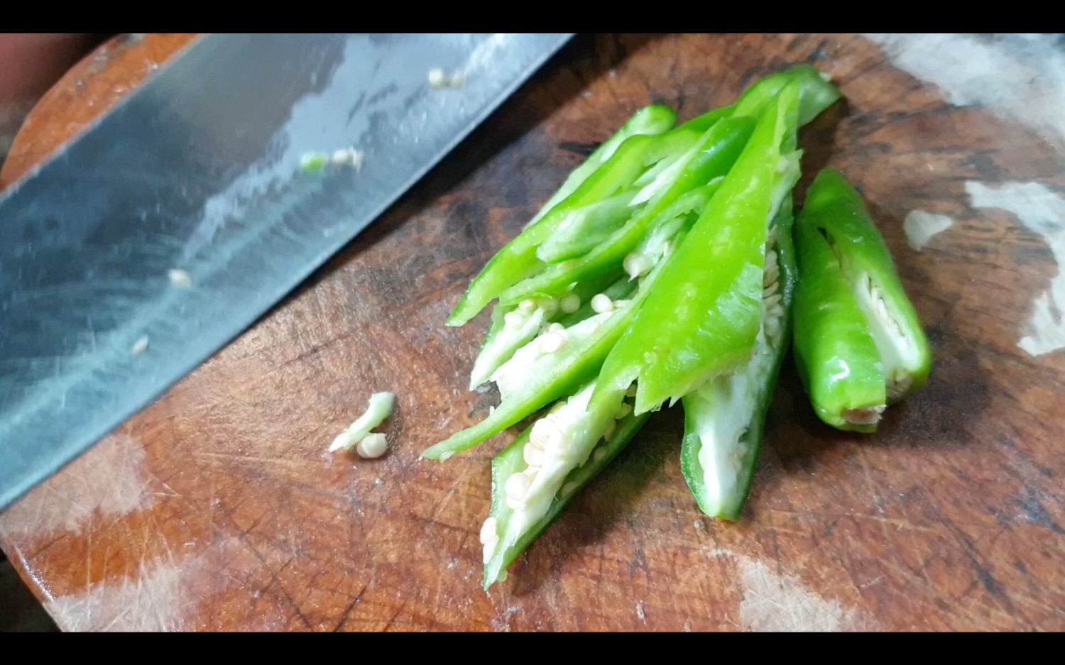 3.สำหรับพริกหนุ่มพอดีในตู้เย็นเหลือแค่เม็ดเดียวค่ะ แนะนำให้ใช้สัก 2-3 เม็ดกำลังดีค่ะ หั่นเฉียงแฉลบเวลาเอาไปผัดจะน่ากินค่ะ