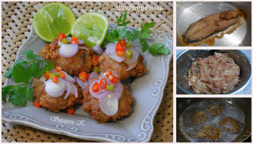 – ผสมหมูสับ ปลาอินทรีย์แกะเอาแต่เนื้อ สามเกลอ และไข่ คนส่วนผสมให้เข้ากันดี