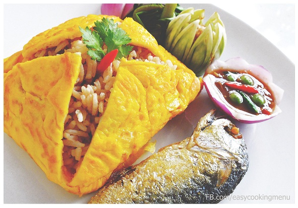 วิธีทำข้าวคลุกกะปิห่อไข่