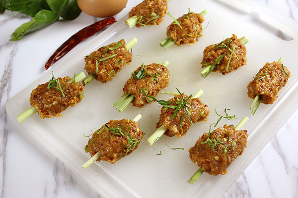 ตะไคร้เสียบก็ใช้ได้แล้วจ้า ไม่แนะนำให้ใช้มือเข้าไปปั้นสดๆเพราะความเหนียวจะทำให้มือเราเละเทะ