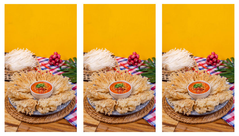 ยำเห็ดเข็มทองทอดกรอบ̶
